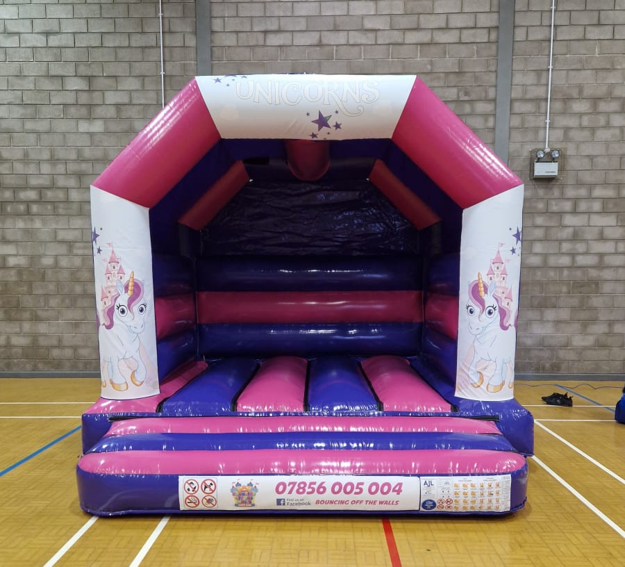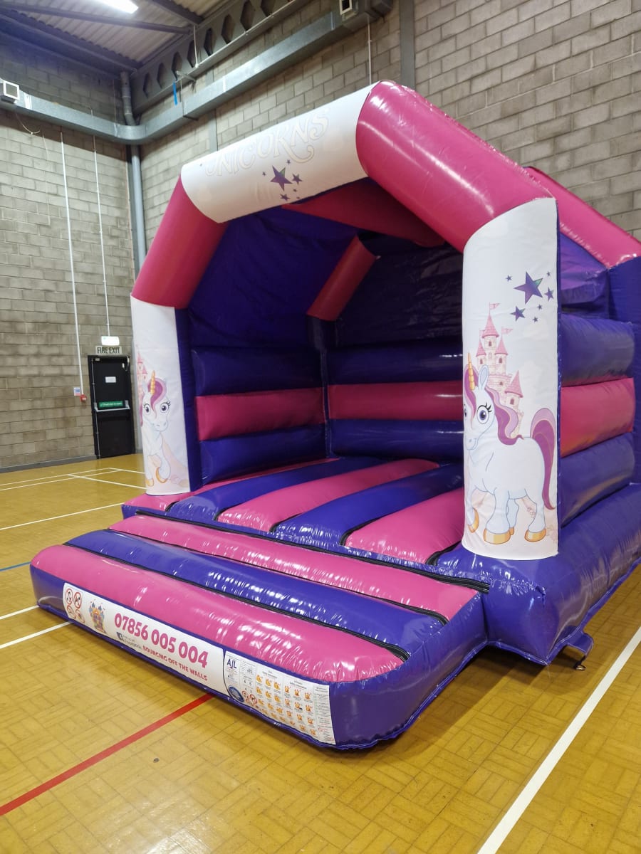 This colourful pink and purple bouncy castle is ideal for your little unicorn lover and is certain to make any event magical. At 12 x 12 ft this bouncy castle is an ideal size for most gardens and indoor venues, but still big enough to bring plenty of fun.